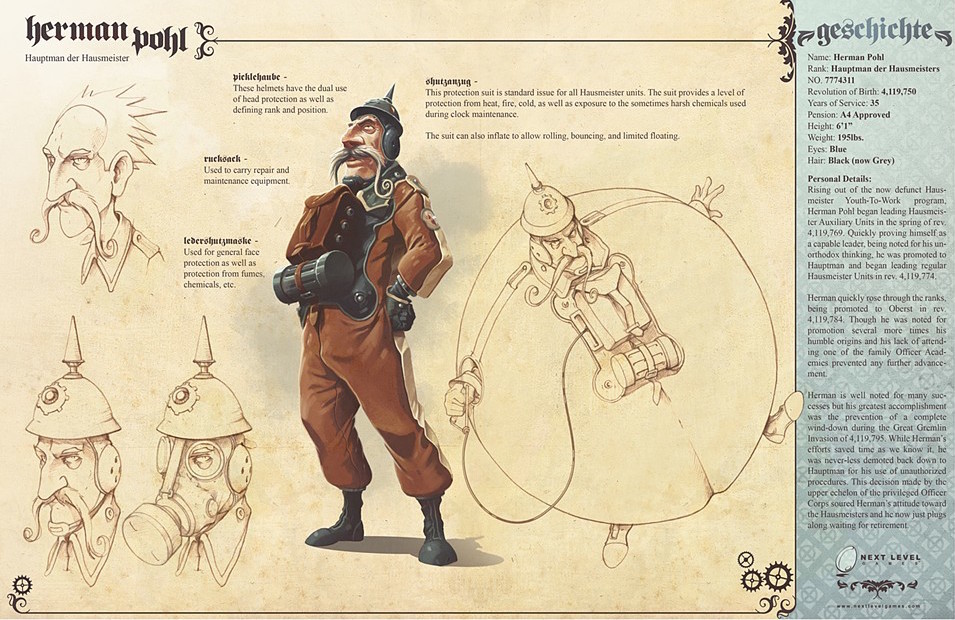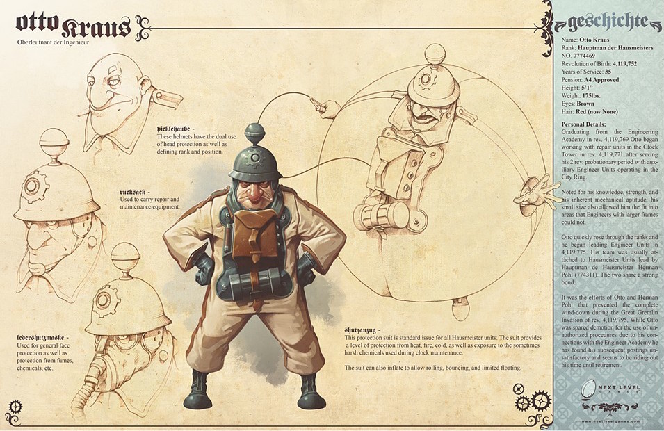 By mid July, Next Level Gams had finalised their designs for the heroic Hausmeisters, but their efforts were not to be realised. According to artist, Derek Stenning, it was discovered that another team within the publisher had been working on a separate game with very similar gameplay mechanics. This had happened completely independently of Next Level’s project in an unfortunate coincidence. As such, the publisher then ended their plans to produce Clockwerk and the project was cancelled in its entirety.